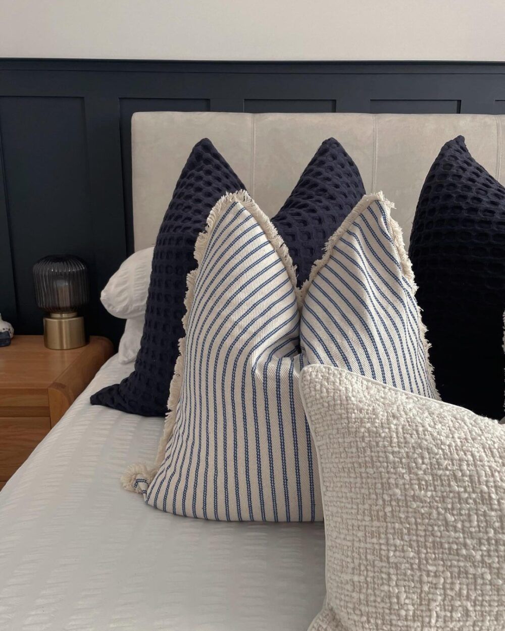 To keep things looking chic, dress the bed in shades close to your wall colour, such as muted navy. The result? An elevated showroom that all your friends will be envious of.