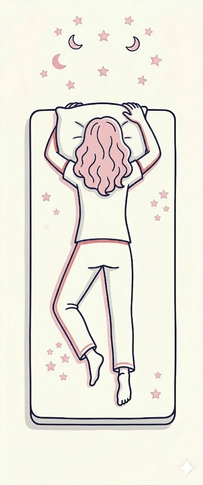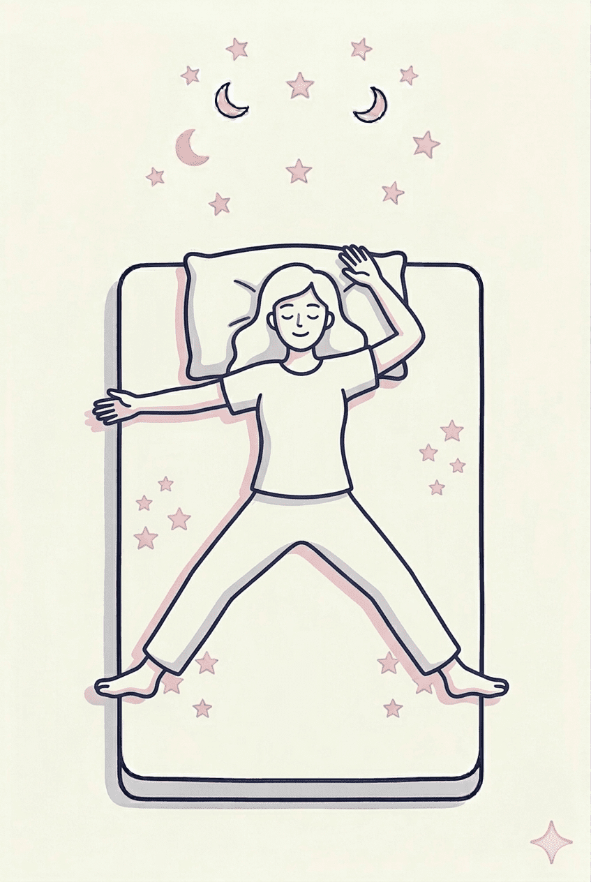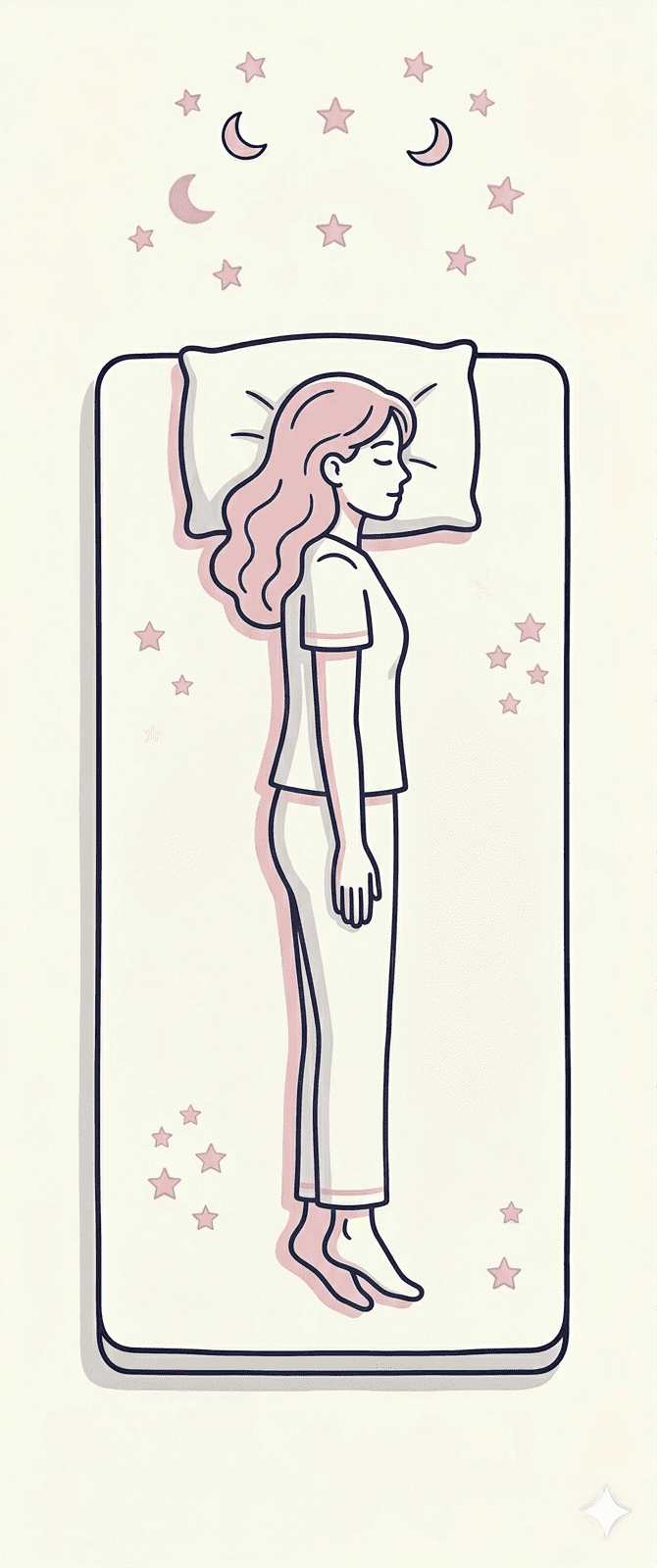 Back sleeping (the supine position) keeps your spine centred and evenly distributes your body weight. It may help reduce neck and back pain, and there’s some evidence it can slow the formation of facial sleep wrinkles, though this hasn’t been studied extensively enough to call it proven.